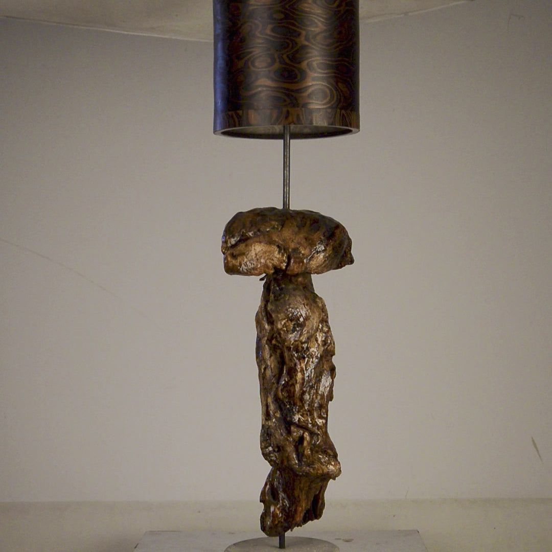 Lichtskulptur LO05 – Treibholz & Nussbaum gemasert dunkel Furnier | Kunstobjekt Unikat